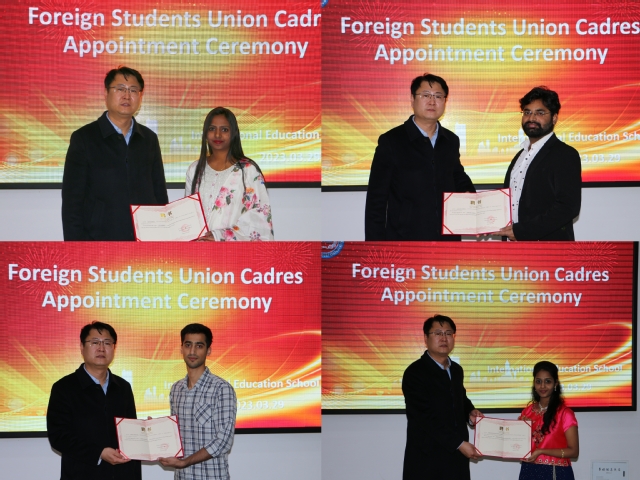 3月29日下午,国际教育学院在杏林园5栋留学生公寓一楼举办了新一届留学生学生会聘任仪式。国际教育学院院长王敬春、副院长李倩、全体留学生辅导员,以及留学生会成员和部分在校留学生参加仪式。