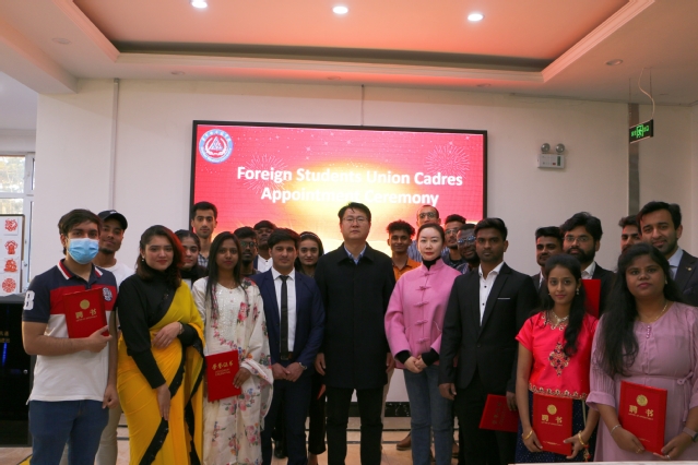会上宣读了新一届留学生学生会聘任名单。国际教育学院院长王敬春为留学生学生会成员Cliff等21人颁发聘书,向受聘者表示祝贺,并对他们提出三点要求。一是迅速转变角色,积极开展各项工作;二是以身作则,发挥模范作用;三是树立服务理念,发挥桥梁纽带作用。国际教育学院副院长李倩寄语新一届学生会成员,希望他们能够坚持自我管理、自我教育和自我服务的方针,踏实干事、做出成绩。会议还明确了学生会各部门工作职责,并提出了具体的工作目标与要求。