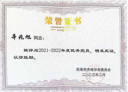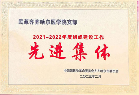 近日,民革市委第二次全体会议暨2021-2022年度表彰大会召开。民革齐齐哈尔医学院支部荣获2021-2022年度组织建设工作“先进集体”荣誉称号,民革齐医支部主委马文辉荣获“优秀党务工作者”荣誉称号,民革齐医支部党员辛兆旭荣获“优秀党员”荣誉称号。民革齐医学院支部主委马文辉、副主委梁明辉、宣传委员于航等受邀参加大会。