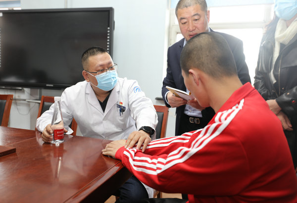 精神卫生中心男二病区主任刘万强为自闭症患儿义诊