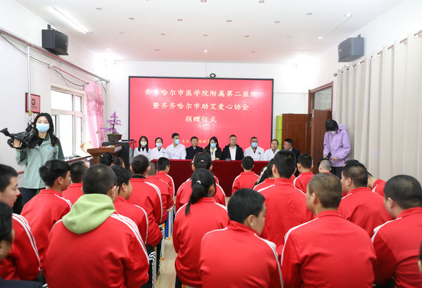捐赠仪式上,刘丽霜副县长向齐医附属二院、助艾爱心协会成员的到来表示崇高的敬意和衷心的感谢,她表示资助特殊学生完成学业是精准扶贫、脱贫攻坚的重要内容,是社会文明与进步的重要标,周扬主任等协会成员在民族发展的战略全局高度,心系克东、情洒教育,把赤诚和爱心奉献给特殊的孩子们,是具有战略眼光的先见之举。希望同学们,要树立自尊、自爱、自立、自强和奋发向上的精神,把社会各界的感激之情转化为学习的动力,为社会发展尽责。