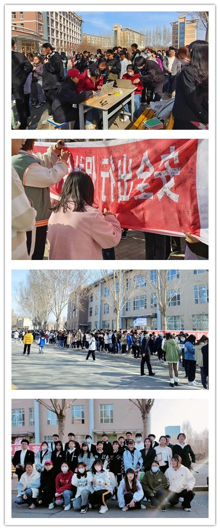 2023年4月5日,为积极响应国家有关遵守道路安全法规的号召,普及和丰富广大师生道路交通法规和交通安全相关知识,提高师生的道路交通安全意识、法治意识和文明意识,提高自我保护能力,预防和减少道路交通安全事故的发生,推动文明校园建设活动深入开展,在学院党委副书记、团委书记佡思维和辅导员老师们的指导下,我院团委在当日下午两点至四点于秋实城前开展了主题为“法规在心中,平安在手中”的交通安全教育活动,全体团委成员参与了现场活动的组织。活动通过线上问卷调查,现场在活动横幅上签名,随机进行现场采访与学生互动等形式宣传遵守道路交通法规的重要性,生动的讲解以及现场互动让学生亲身体会,并将学到的知识分享给身边的人,通过“一传十,十传百”的效果来起到事半功倍的效果。