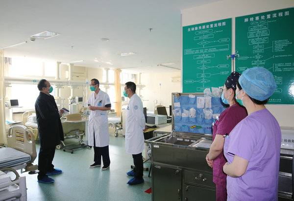 汇报结束,专家组对医院胸痛中心相关文件资料的真实性、相关数据的溯源性进行了核查,分组前往急诊胸痛诊室、导管室、CCU等现场考察,实地查验120模拟演练、胸痛救治流程及运行情况,并随机对医护人员、保洁、保安、电梯员等进行了抽查提问。