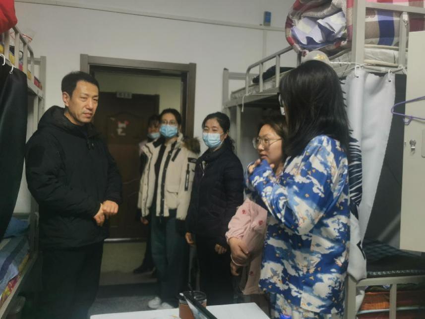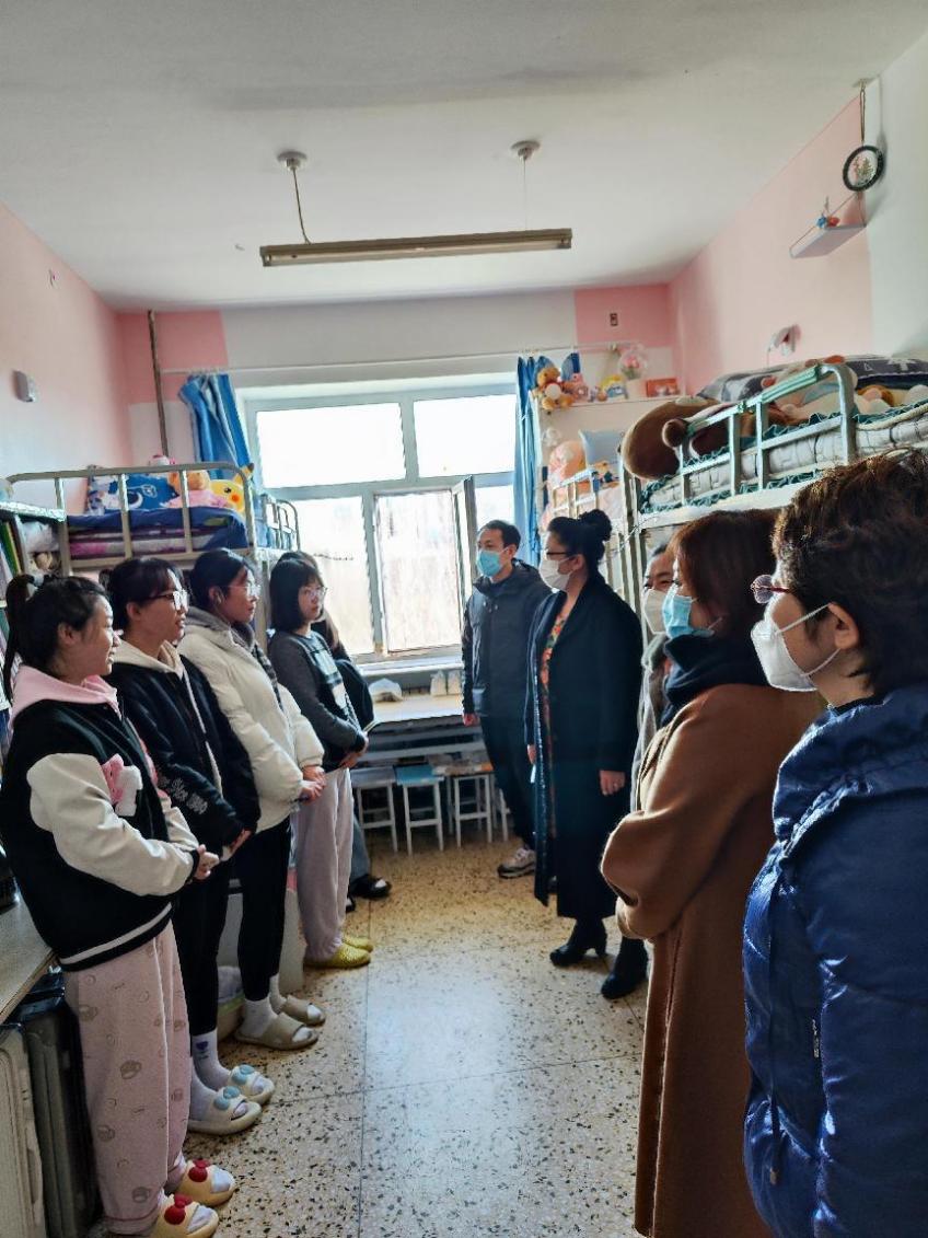 2月25日下午,护理学院党总支书记李强、副书记付桂华、辅导员逄丽红一行3人看望入住邮政学校的140名实习学生,详细了解学生住宿情况,倾听学生意见和建议,现场和工作人员协调,为学生解决具体困难,并及时与有关部门进行了反馈。走访中,两位领导与实习学生进行深入交流,叮嘱同学们珍惜线下实习时光,鼓励考研学生积极备考复试,希望同学们能增强就业的紧迫感,抓紧就业。