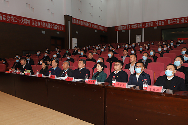 会上,崔光成就扎实开展主题教育进行部署。一是要深刻领会主题教育的重大意义,积极主动投身到主题教育中。全院党员干部要提高政治站位,切实把思想和行动统一到习近平总书记重要指示精神和党中央、省委的决策部署上来,把抓好这次主题教育作为当前和今后一段时期的重大政治任务。二是要准确把握主题教育目标要求,全面贯彻到主题教育中。要准确把握党中央、省委精神,紧密结合学院实际,明确要求,落实任务,对准目标,持续发力,推动主题教育走深走实、见行见效,促进各项事业提质增效,在新时代奋进新征程的赶考路上勇立新功,不断推动学院高质量内涵式发展。三是要精准落实主题教育重点措施,融会贯通到主题教育全过程。把理论学习、调查研究、推动发展、检视整改等贯通起来,把深化能力作风建设“工作落实年”活动贯穿其中,结合年度重点工作任务、政治生态建设成效考核、增值性评价等工作,统筹衔接、有机融合、一体推进。四是切实加强主题教育组织领导,周密部署落实落靠责任。各级党组织要切实做到任务上身、责任上肩、工作上心、措施上手,要落实主体责任,坚持统筹推进,加强督促指导和考核评价,营造浓厚氛围,把主题教育工作纳入“四个体系”,切实把主题教育谋划好、组织好、落实好,确保各项目标落实落细。