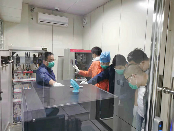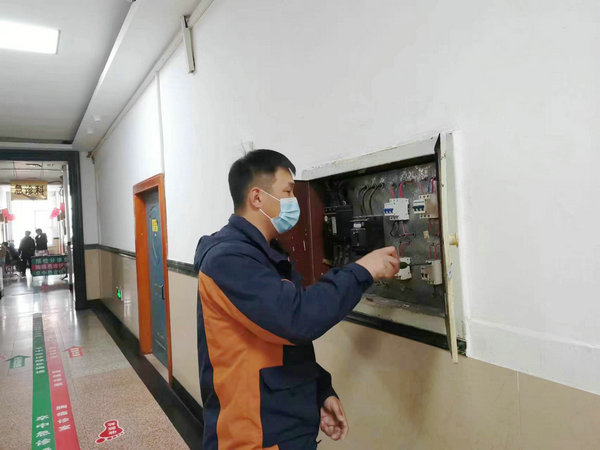 电工班对门诊楼变电箱进行隐患排查
