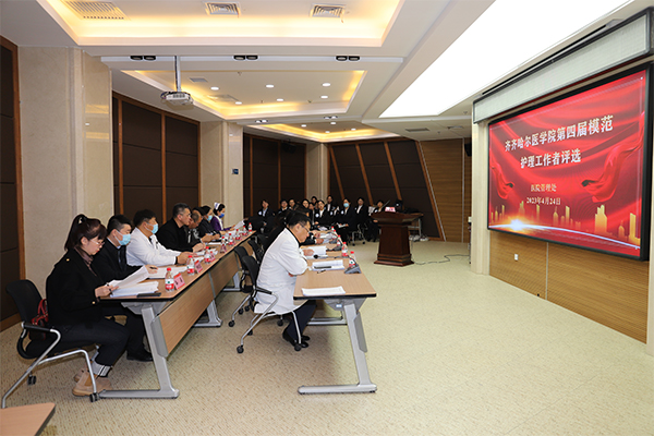 会议由医院管理处处长李春旭主持,学院副院长、党委常委毕红霞,医院管理处处长李春旭、副处长韩俊岩,护理学院副院长李桂玲及各附属医院院长、医疗副院长、护理部主任共13人担任专家评委。经过各附属医院优中选优等额推荐、候选人现场汇报、专家评委评分,最终拟定15名候选人当选“齐齐哈尔医学院第四届模范护理工作者”。