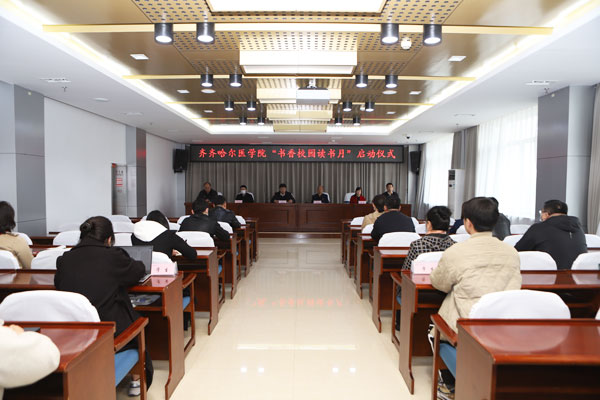 会上,学院党委常委、宣传统战部部长张宝林宣读了《齐齐哈尔医学院“书香校园·读书月”方案》。根据活动方案,本次读书节将举办“阅读好书·共享经典”荐书活动、“世界读书日”主题活动、“争做新时代好老师”师德师风演讲比赛、“书香齐医 掠影青春”摄影大赛、“观影品书 书影相随”红色主题电影展等系列活动。