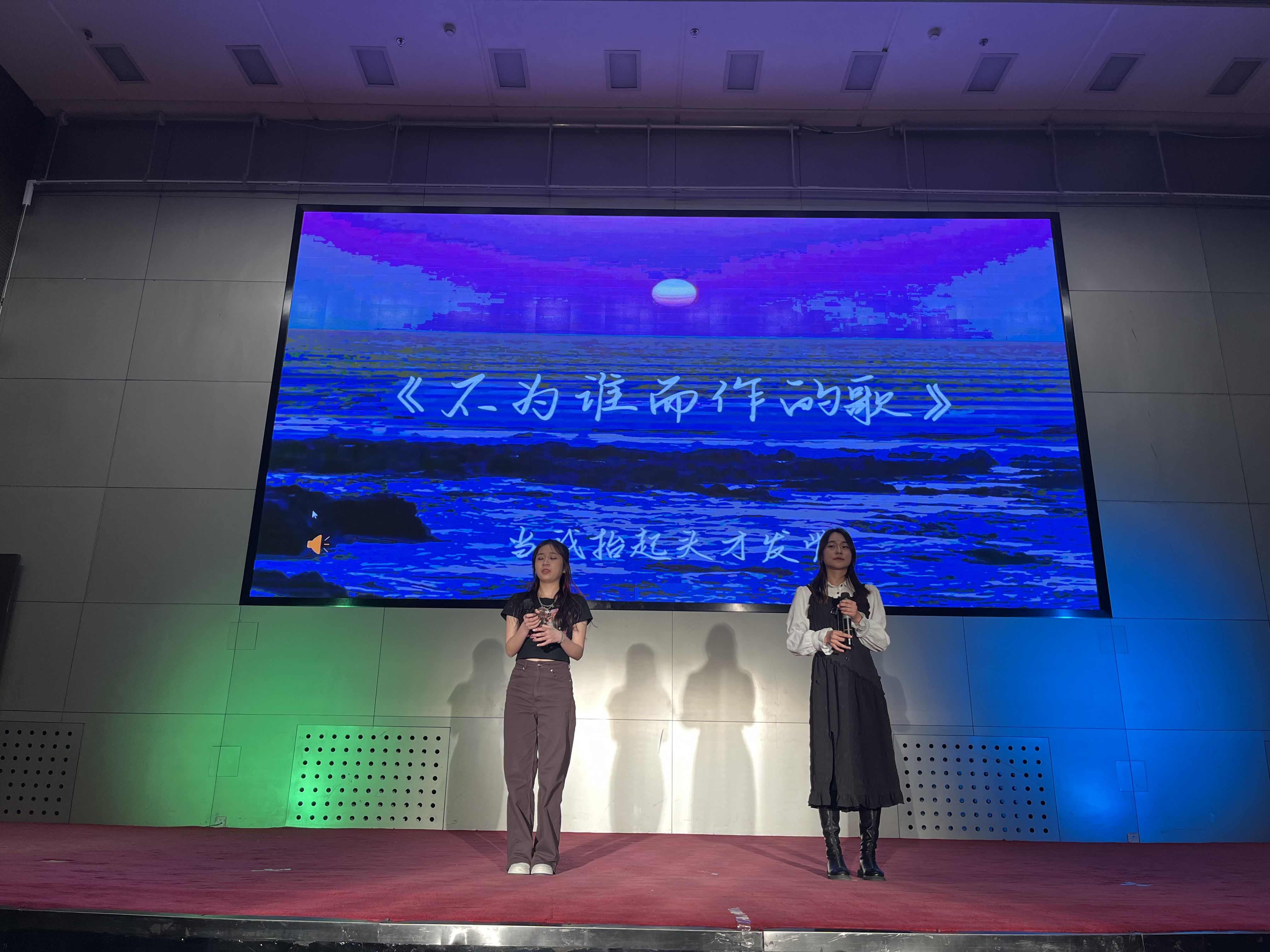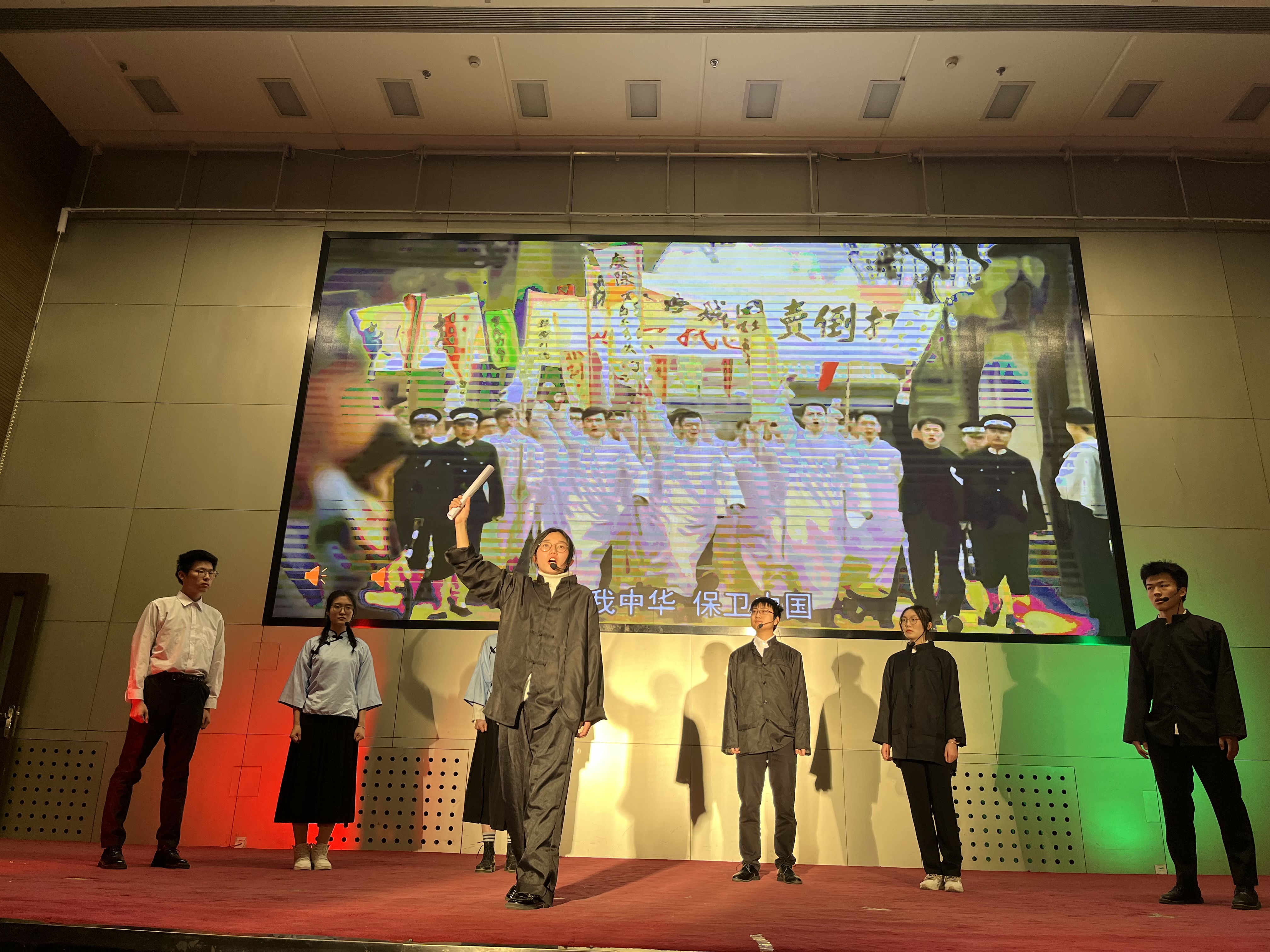 诗朗诵《有一首歌》诵读了中国共产党的光辉历程,提醒同学们珍惜来之不易的幸福生活。