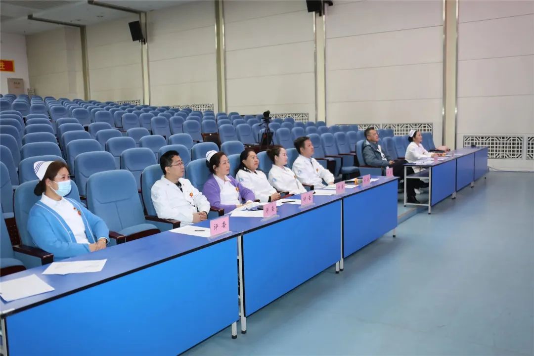 医疗副院长刘增良出席并观看本次比赛,工会主席陈珊珊、质控办主任张玲、科研科科长吴迪、医务部主任张羽镝、宣传科科长陈鹏、护理部主任范桂红、宣传小组组长吴丽红担任评委。