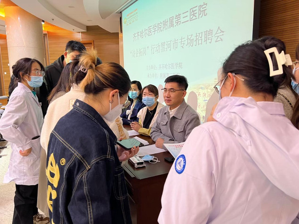 会后,很多同学与用人单位进行交流,积极主动了解黑河市爱辉区引进医疗人才相关要求和两家用人医院情况。黑河市第二人民医院、黑河市爱辉区妇幼保健计划生育服务中心领导对于我院学生成为其医院的一员表达了殷切的希望。