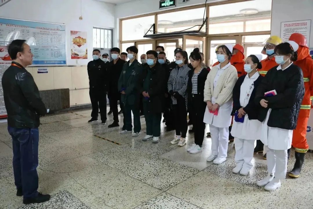 为切实做好消防安全工作,进一步提高全院职工消防安全防范与自救能力,4月26日,齐医附属一院组织开展消防应急演练。副院长艾立辉、保卫科科长孙海峰、保卫科及全院各科室消防骨干参加观摩消防应急疏散演练活动。