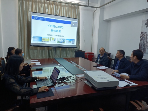 为全面提高护理学院课程思政建设水平,根据教务处《关于开展课程思政“结对子”活动的函》相关要求,4月27日上午,护理学院在主楼北区504会议室开展课程思政“结对子”集体备课活动。马克思主义学院梁斌、曹加亮两位思政课教师应邀参加人文护理学教研室集体备课并进行交流指导。护理学院无课教师通过线上形式参会。本次活动由护理学院党总支书记李强主持。