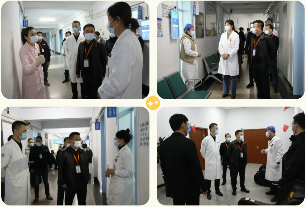 党委书记刘晖对消防器材摆放及使用、安全巡查记录薄、万人评及满意度调查落实情况进行调研。刘书记要求各科室、各部门负责人要增强安全责任意识,认真履行职责,严把安全关,始终绷紧安全生产这根“弦”,严格落实安全生产责任人制度。希望党员干部以身作则、严以律己,树立廉洁、安全、文明、节俭的新风尚,为患者提供最优质的服务,全院上下共同营造风清气正的工作氛围,切实保障医院各项工作在节日期间平稳运行。