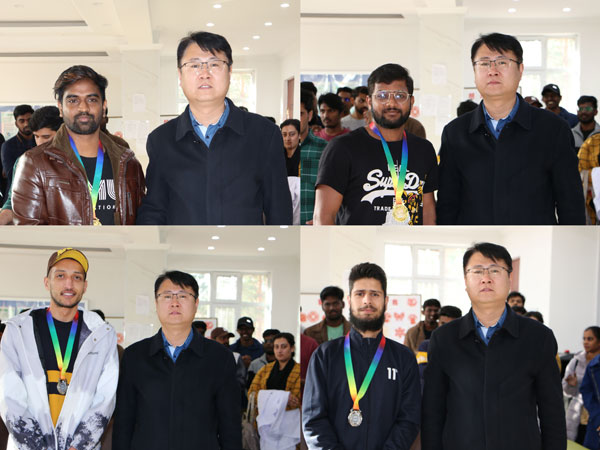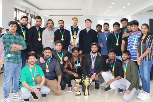 比赛历时半个多月,共有12支球队参赛,进行了小组赛、四分之一决赛、半决赛以及决赛累计37场比赛。经过激烈角逐,Tamilas和The Boys球队以强劲的实力和高度协作的团队凝聚力脱颖而出,分获本次比赛的冠亚军。同时,比赛还评选出4名最佳球员。国际教育学院院长王敬春对获胜球队和最佳球员表示祝贺,并为他们颁发奖杯奖牌,与他们合影留念。同时激励留学生积极参加体育锻炼,保持健康体魄。