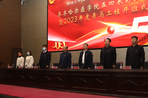 会上宣读了《关于命名表彰2022年度先进集体和个人的决定》和《关于聘任“青马工程”团校培训指导教师的决定》。与会领导和嘉宾为2022年度五四获奖代表颁奖,为2023年青马工程导师颁发聘书。药学院党委作典型经验交流、全省优秀共青团员杨琪、2023年青马工程导师代表王克娜、学员代表盛文镜分别发言。全体共青团员和共青团干部高举右拳,以最洪亮的声音重温入团誓词。