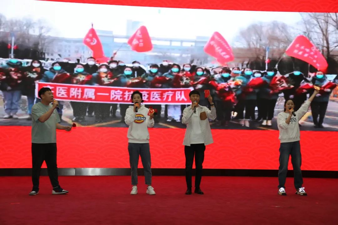 节目的最后,护理部主任范桂红带领护理同仁带来表演唱《愿你护理一生 归来仍是少年》把演出活动推向高潮,这是附一护理人满怀热忱,初心不悔,砥砺前行的绝唱,我们仿佛看到她们用纯真而炙热的赤子心,去抚平病人心灵的创伤,用火一样的热情,陪伴患者战胜疾病。