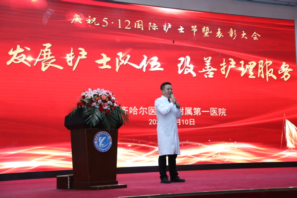 云霞开锦绣,万物启芳华,第112个“5.12”国际护士节如约而至。为弘扬南丁格尔救死扶伤的人道主义精神,表彰我院护理工作岗位上做出突出贡献的先进模范,展示护理队伍良好的精神风貌和职业风范,充分激发护理工作者全心全意为人民服务的工作热情,5月10日,齐医附属一院隆重召开“发展护士队伍,改善护理服务”庆祝5.12国际护士节暨表彰大会。医院领导班子、中层干部和全院护理人员参加本次会议。齐齐哈尔市融媒体中心新闻综合频道总监贾巍巍应邀参加。表彰会于线上线下同步进行,大会由副院长刘增良主持。