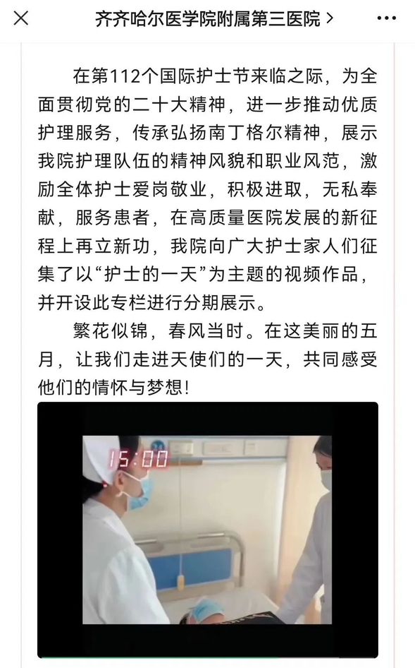 五月繁花开,天使展风采,我院护理人将继续传承南丁格尔精神,牢记习近平总书记将人民群众生命安全和身体健康放在第一位的重要指示精神,秉承“厚德、精医、砺学、至上”的院训,扛起光荣使命,砥砺奋斗征程,戮力同心,踔厉奋发,全力保障人民群众生命安全和身体健康!