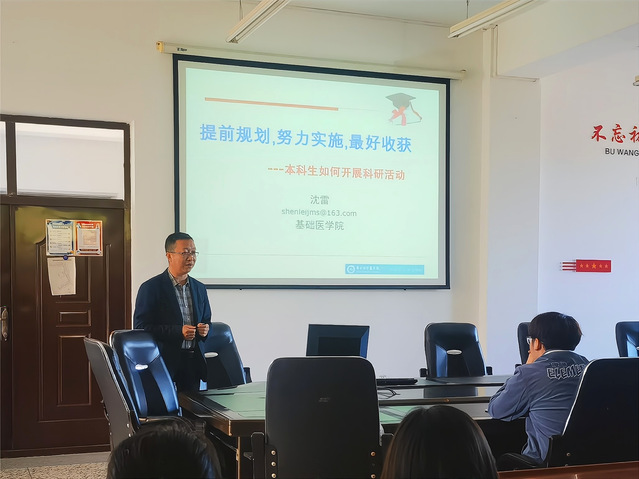 基础医学院始终坚持以学生成长为中心,大力支持本科生参加大学生创新训练计划、参与教师科研项目及学科竞赛等科研训练。本次讲座进一步提升了学生对科学研究的兴趣,增强了学生的科研意识,充分调动学生开展科学研究的积极性和创造性,激发了学生主动学习和参与科研的热情,为学生未来的学习和科研打下坚实的基础 。
