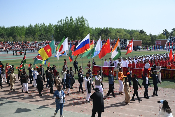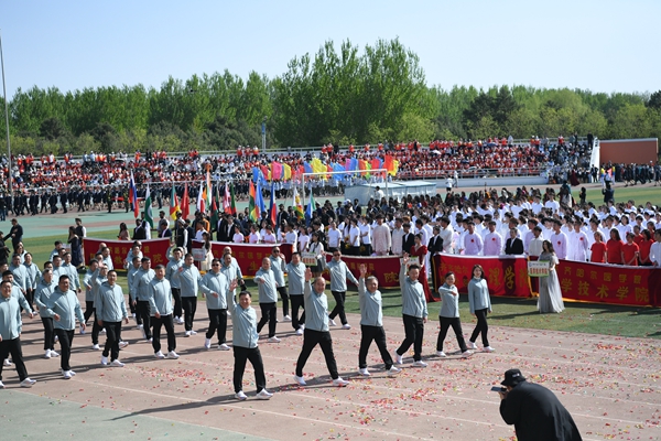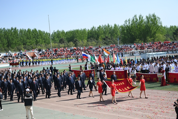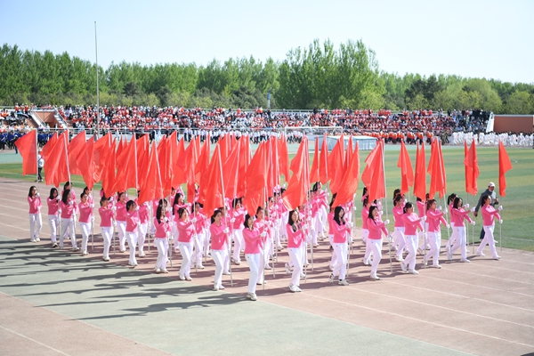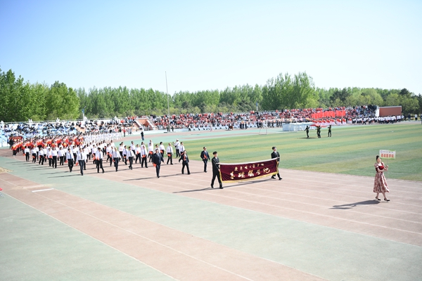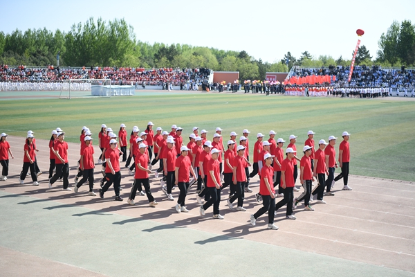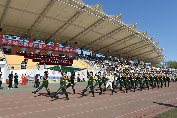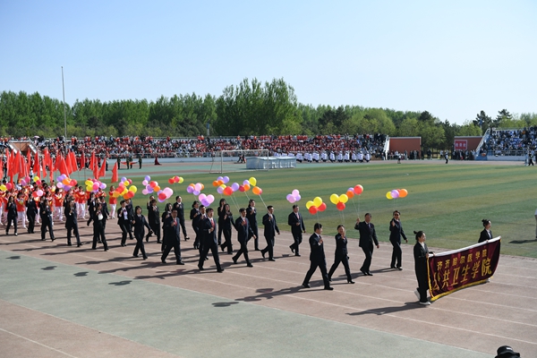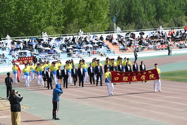国旗护卫队迈着铿锵有力的步伐,护卫着鲜艳的五星红旗,走在检阅队伍最前列,尽显飒爽英姿。校旗护卫队、彩旗方队、裁判员队伍、院部代表队,以及各二级学院、研究生院、附属医院代表队依次走过主席台,接受大会检阅。师生们挺拔的身姿、整齐的步伐、昂扬的面貌,展现着青春的力量。运动场上彩旗招展,鼓乐阵阵。
