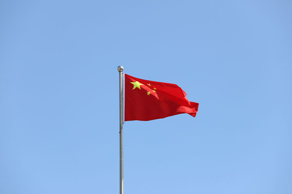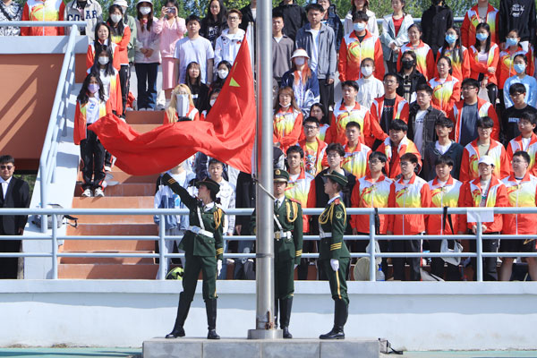 伴随着雄壮的国歌声,五星红旗冉冉升起。