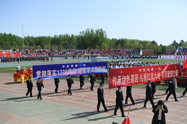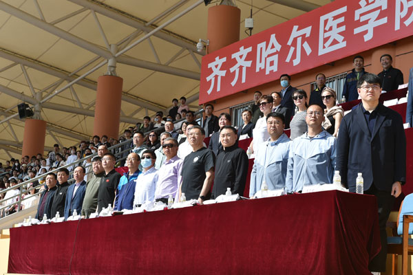 学院党委副书记崔光成致开幕词。他代表学院向本届运动会的隆重召开表示热烈祝贺,向参加此次运动会的全体运动员、裁判员表示诚挚问候,向现场各代表队及全体师生致以美好祝福,向筹备本届运动会的组委会及全体工作人员表示衷心感谢。他指出,党和国家始终高度重视体育事业发展,党的二十大报告更提出要广泛开展全民健身活动,加快建设体育强国,学院举办一年一度的田径运动会,正是对师生平时体育运动开展情况的一次大检阅。他希望广大师生以运动会为契机,进一步强化终身体育锻炼的习惯,牢固树立为祖国健康工作50年的意识,弘扬“自强不息、甘于奉献”的齐医精神,展现新气象,彰显新作为,创造新业绩,为成为和培养德智体美劳全面发展的社会主义建设者和接班人,早日实现医科大学的齐医梦而不懈奋斗。