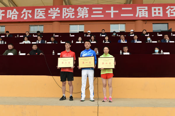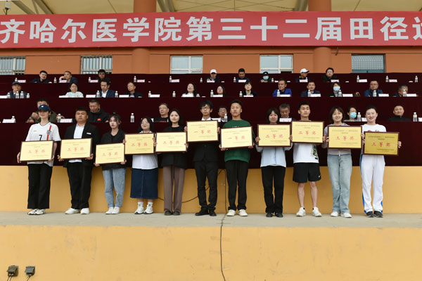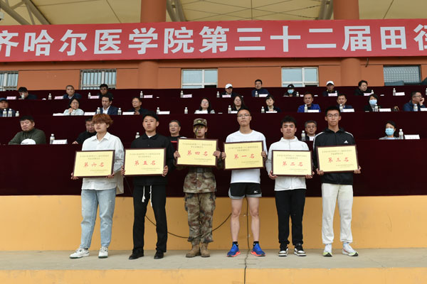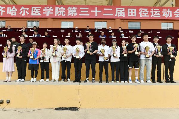 经过近两天紧张激烈的角逐,附属第二医院、齐市第一医院、附属第三医院代表队荣获职工组团体前三名;医学技术学院、护理学院、基础医学院大一、基础医学院大二、口腔医学院、基础医学院大三代表队荣获学生组团体前六名;基础医学院、公共卫生学院荣获团体操比赛一等奖;全部学生组参赛单位获得体育道德风尚奖。同时,学院教工冯海英在赛场上奋力拼搏,刷新了他所保持的职工男子组铁饼项目纪录。