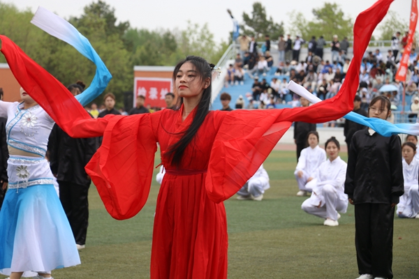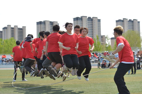 各二级学院和附属医院团体操队员们连日来迎着朝阳、伴着晚霞的刻苦排练,以及随着动感音乐挥洒的汗水,化作了运动场上精彩纷呈、整齐划一的表演。同学们激动的表示:“多日的努力在此刻发挥到了极致,这是我们最好的表演,将给我们留下青春最美好的回忆。”中国心、中国结、党徽等独具匠心的造型,华尔兹、民族舞、太极拳、军体拳等各具特色的表演,将柔美与阳刚、艺术与体育有机结合,在赛场上绽放出一朵朵青春之花,展现了齐医学子热爱祖国、热爱齐医的深厚情感。