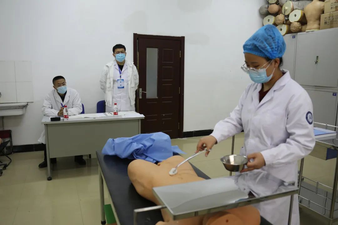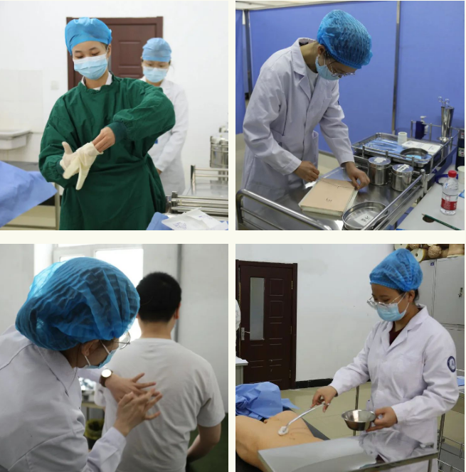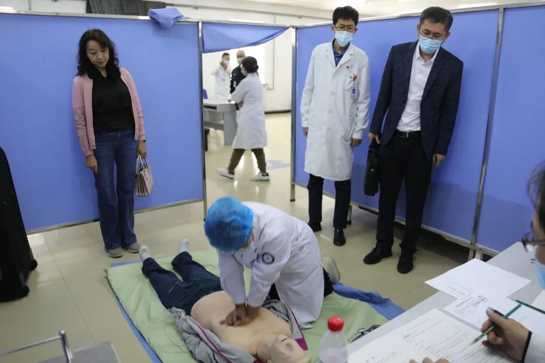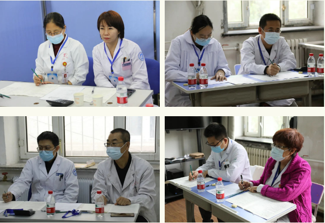 本次考试分为理论考试和技能考试两个部分。5月19日,学生们到齐齐哈尔医学院、齐齐哈尔大学参加机考形式的综合理论考试,主要考查学生的基本理论知识,涉及基础医学、医学人文、预防医学和临床医学知识点。5月20日至21日为实践技能操作考试,医院在东西区临床技能中心共设置5个考组,每个考组6个考站,采取客观结构化临床考试模式,分别考查病史采集、体格检查和临床基本操作能力。其中,第一、二站病史采集中使用“标准化病人(Standardized Patients,SP)”,第三、四站体格检查中使用“标准体检者”,第五站考察学生心肺复苏技能,第六站考察学生包括手术刷手法、静脉穿刺采血等9项基本操作。对学生各项临床技能操作能力、临床综合思维能力、人文关怀和交流沟通能力等进行全方位的考核。
