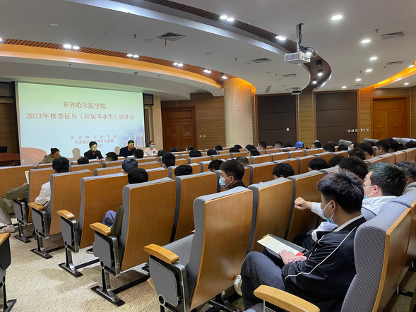 为帮助学生全面了解应征入伍政策,鼓励和引导学生响应国家号召投身军营,5月16日下午,我院特邀齐齐哈尔医学院武装部孙立强部长、王烨兴副部长、胡巍科长、王翠翠老师在我院住院综合楼第一会议室召开应届毕业生参军入伍宣传动员讲座。我院学生科全体辅导员、23年应届毕业生参加了本次宣传动员讲座。