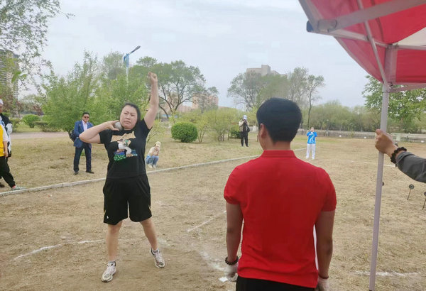 泌尿外科一病区孟尹在女子铅球比赛中获得第一名
