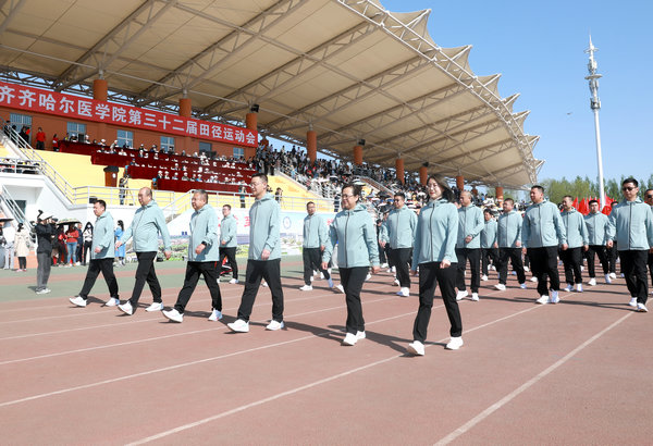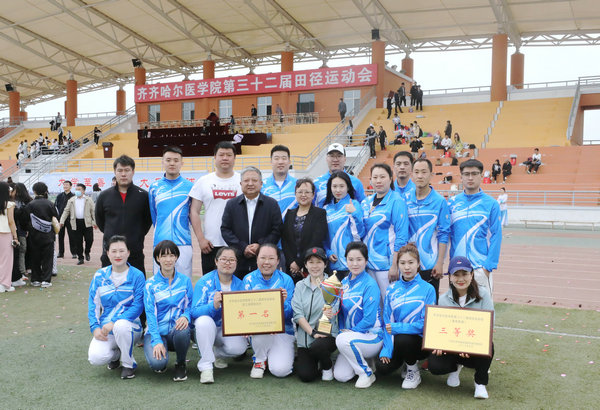 5月18日—19日,齐齐哈尔医学院第32届田径运动会在校区运动场隆重举行。医院领导班子、干部职工、运动员及学生100余人参加运动会,经过两天的激烈角逐,齐医附属二院喜获职工组团体第一名。