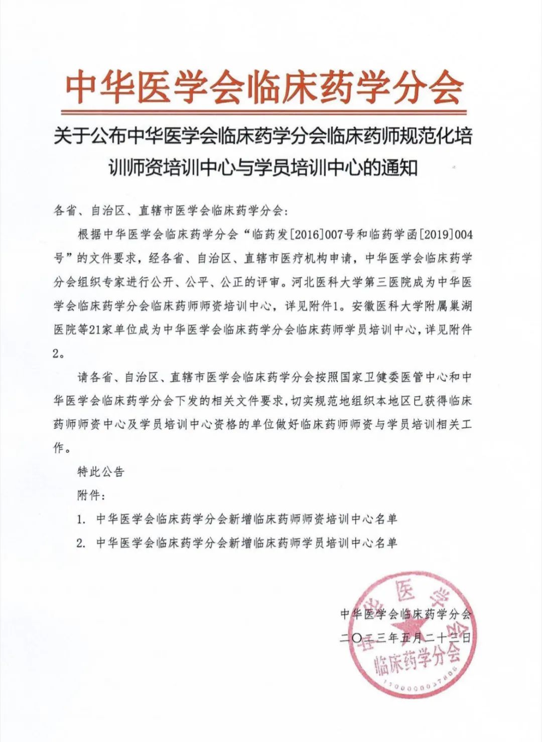 齐医附属一院在2022年启动临床药师学员培训中心申报工作,经过精心筹备、上报材料等环节,最终顺利通过专家评审,于5月23日经中华医学会临床药学分会批准获批成为“中华医学会临床药学分会临床药师规范化培训学员培训中心”。获得招生资格后,可面向全国招收临床药师学员,招生专业为“抗感染药物专业”“神内专业”。