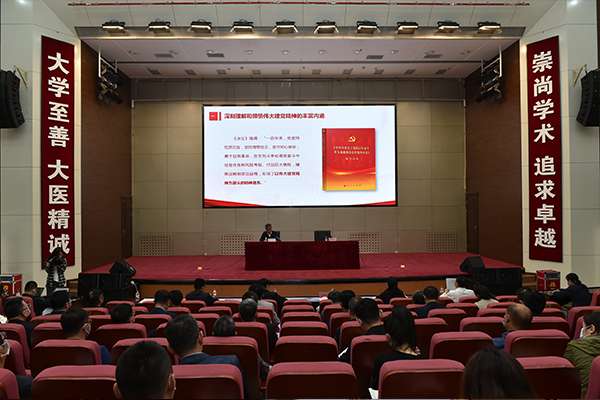 赵光院长结合学习运用习近平新时代中国特色社会主义思想指导实践、推动工作的学习体会,聚焦服务推动龙江高质量振兴发展、推动学院高质量内涵式发展,以《弘扬伟大建党精神赓续自强不息血脉推动学院实现高质量内涵式发展》为题,从深刻理解伟大建党精神的丰富内涵;深入践行和传承“自强不息、甘于奉献”的齐医精神;以主题教育为契机,凝心聚力推动学院实现高质量内涵式发展三个方面,进行了深入浅出地讲解,具有很强的理论性和指导性,让大家进一步清晰了职责和使命。