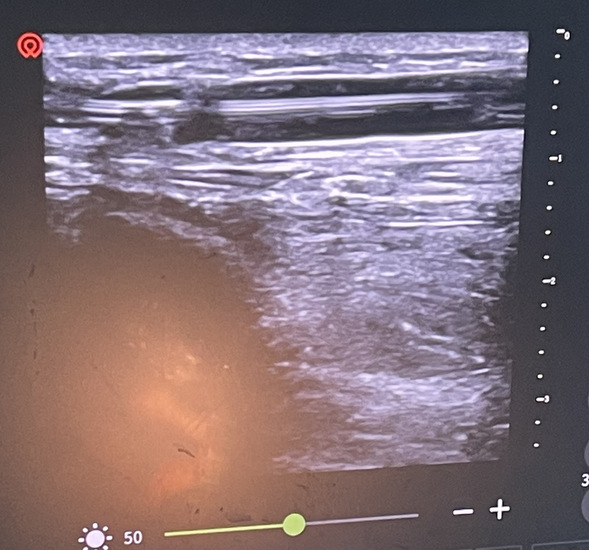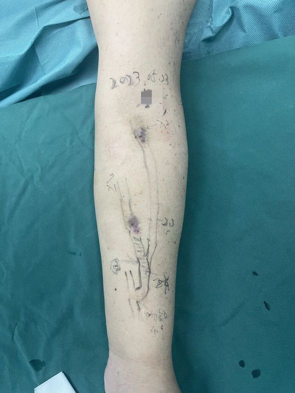 李双宇医生带领患者前往超声室进行检查,检查结果提示:近瘘口流出道管腔狭窄伴中低回声充填,管腔狭窄75%-99%,无明显血流信号。听到这个消息后患者如同晴天霹雳一样,心情十分焦躁,得到结果后李双宇医生一边安抚患者及家属情绪,一边组织科室内医生对患者目前情况进行研判,研讨出两种解决方案:第一,近端重建,避开患者狭窄及血栓部位重新吻合血管开通内瘘,但考虑到患者血管资源有限穿刺部位较少,经研究果断放弃此手术方式;第二,球囊扩张加局部血管鞘内注射尿激酶溶栓治疗,此方案能最大程度保护患者有限血管资源,而且开通几率较高,选择此方法进行手术。