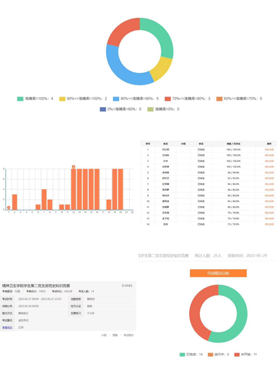 5月26日-5月28日,学生第二党支部利用易班网开展了党史知识竞答活动,经过激烈角逐,闫红朋、任诗铭、孙岑、徐梦婷分别荣获一、二、三等奖和优秀奖。党史知识竞答活动促进了学生对党史的学习,增强了对党的初心和使命的理解和掌握,也提高了学生党员“学思想、强党性、重实践、建新功”的自觉。