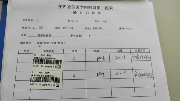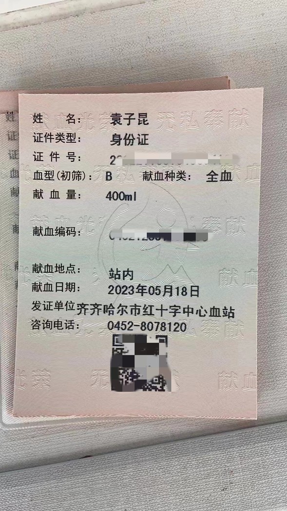 患有胃占位性病变的王奶奶,今年76岁,有三个孩子。大儿子患有痛风,不符合献血条件;大女儿56岁,超过献血年龄;小女儿远在北京工作无法及时献血,在此情况下,王奶奶的长孙献了200毫升。患者血红蛋白91克每升,年老体弱的老人家,想顺利完成此台手术,200毫升血肯定不够,正在焦急万分时,普外三科袁玉峰医生回家时无意中讲出了患者的处境,其爱子袁子昆主动提出:“还缺多少血,我去献血,我年轻,也愿意帮这个忙。”袁玉峰对子昆说,一定要和妈妈商量一下,毕竟每个人的生命来源于母亲。子昆征得妈妈的同意后,毅然决然地献给出了宝贵的400毫升生命之血。王奶奶在袁子昆的帮助下顺利完成手术,至今为至老人也不是很清楚是谁帮助了她。袁玉峰和袁子昆也没有和患者及家属提及过此事。
