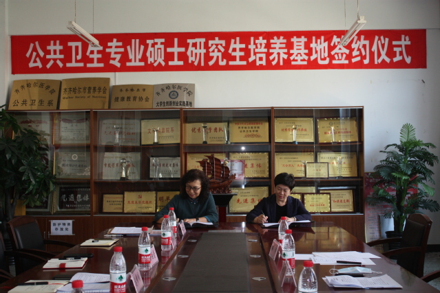 活动现场,公共卫生学院副院长娄峰阁与秦皇岛市妇幼保健副院长沈文莉代表双方共同签署了“研究生联合培养基地”校企合作协议,并为“公共卫生硕士研究生实践教学基地”揭牌。