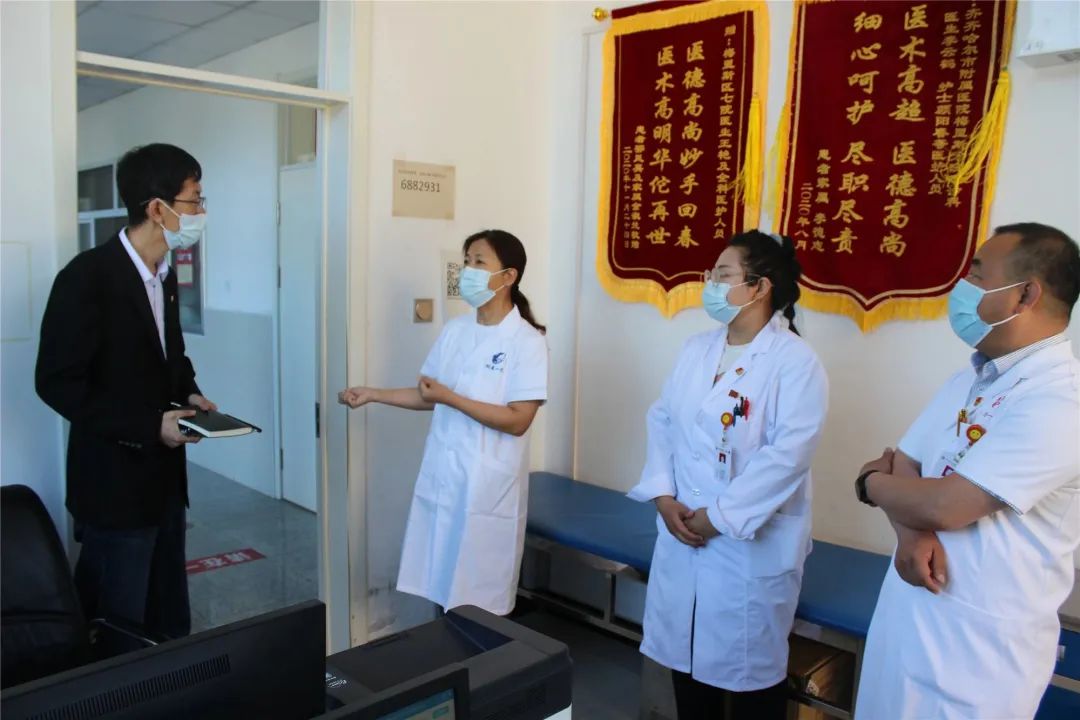 6月1日上午9点,齐医附属一院副院长薛徽带领总院感控科、病案科、护理部、门诊部、财务科等职能部门到梅里斯分院开展行政查房,分院孙立冬书记、徐凤华院长带领相关科室负责人分组陪同检查。
