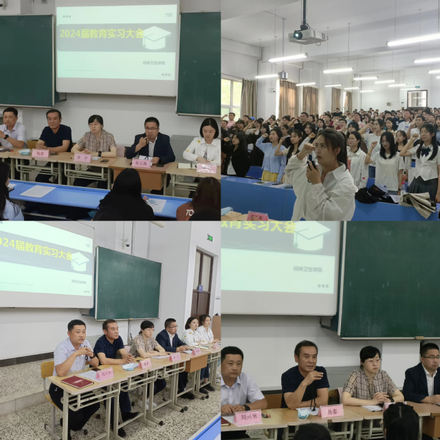 为顺利完成各专业学生的教学任务,帮助学生做好职业角色转变准备,6月1日下午,精神卫生学院在北区113教室召开了2024届毕业生实习教育大会。会议由刘兴来副书记主持,党总支书记杨泰、院长李平、副院长孙正海参会并做主题发言,年级辅导员及全体实习学生参加。
