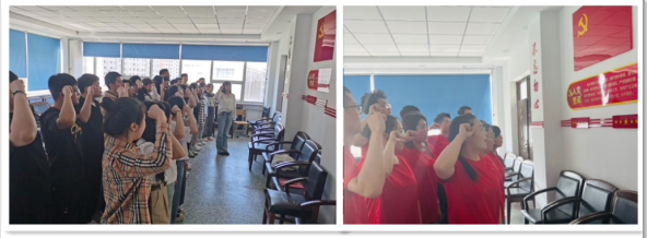 医学技术学院学生第一、第二党支部,在党员之家举办了毕业生党员重温入党誓词活动。全体党员面向党旗,高举右手,用激昂的声音重温入党誓词,以铮铮誓言再言入党初心,以嘹亮之声表明报国之志。
