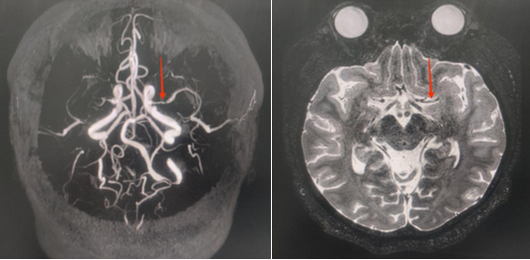 患者右侧大脑中动脉闭塞,左侧大脑中动脉M1段狭窄