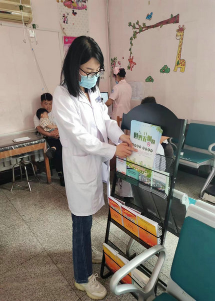 在门诊诊室张贴控烟宣传单并为患者发宣传单