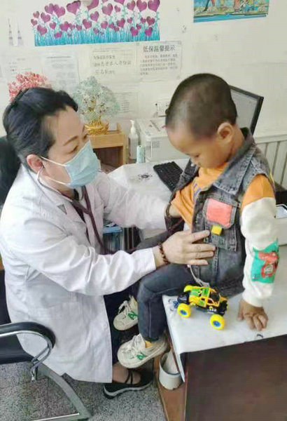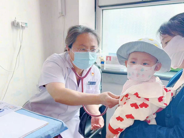 儿科主任朱颖为小朋友进行诊治