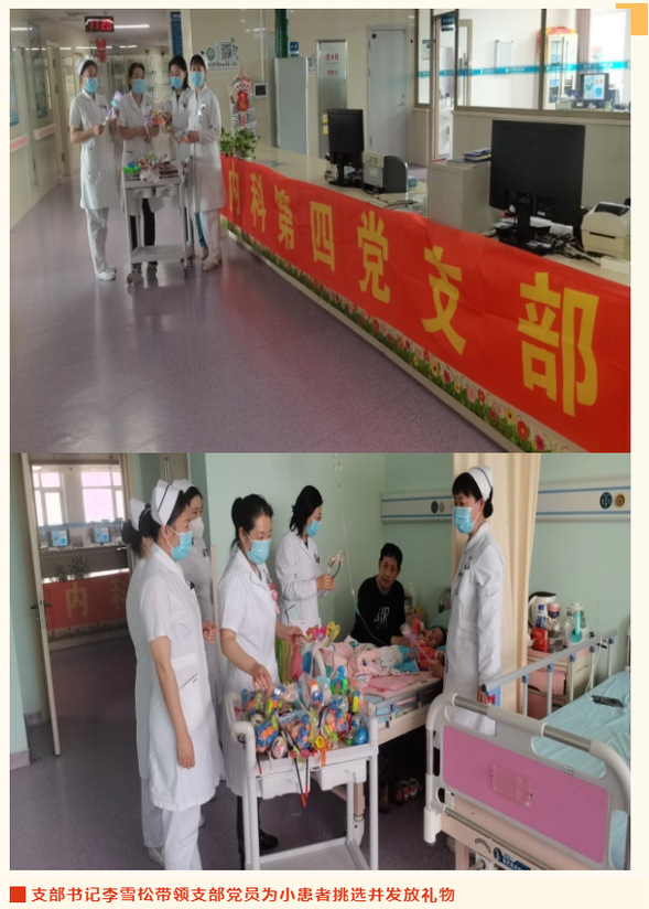 恰逢第73个国际“六一”儿童节即将到来之际,党支部书记李雪松同志带领支部全体党员走进儿科病房,为每一位小患者都送上了贴心的小礼物。儿科主任亢杨和护士长赵艳茹以及新生儿科护士长张帆,结合丰富的临床工作经验,为患者家属讲解了关于儿科疾病的健康宣教知识,让家长们感动满满,受益匪浅!