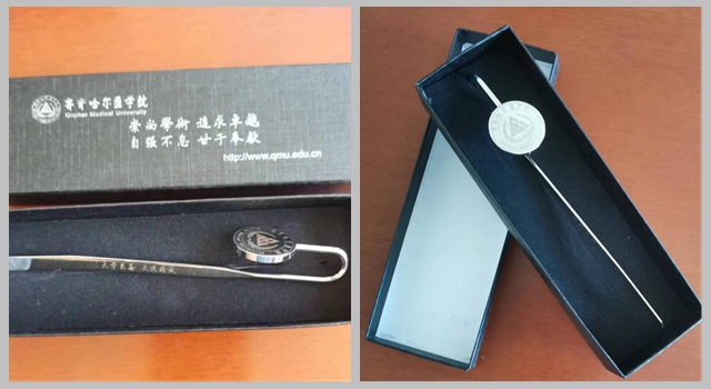 毕业纪念书签是学院校友会精心设计的赋含深意的精美纪念品,上有金属镂刻的齐医校标及“大学至善 大医精诚”校训,外包装礼盒上印有“崇尚学术 追求卓越”的办学理念和“自强不息 甘于奉献”的齐医精神。寓意希望同学们今后继续发扬齐医精神,铭记校训,坚守初心,奋发有为,做一方百姓的健康忠诚守护者,为新时代国家医药卫生事业添砖加瓦,积极贡献齐医力量。