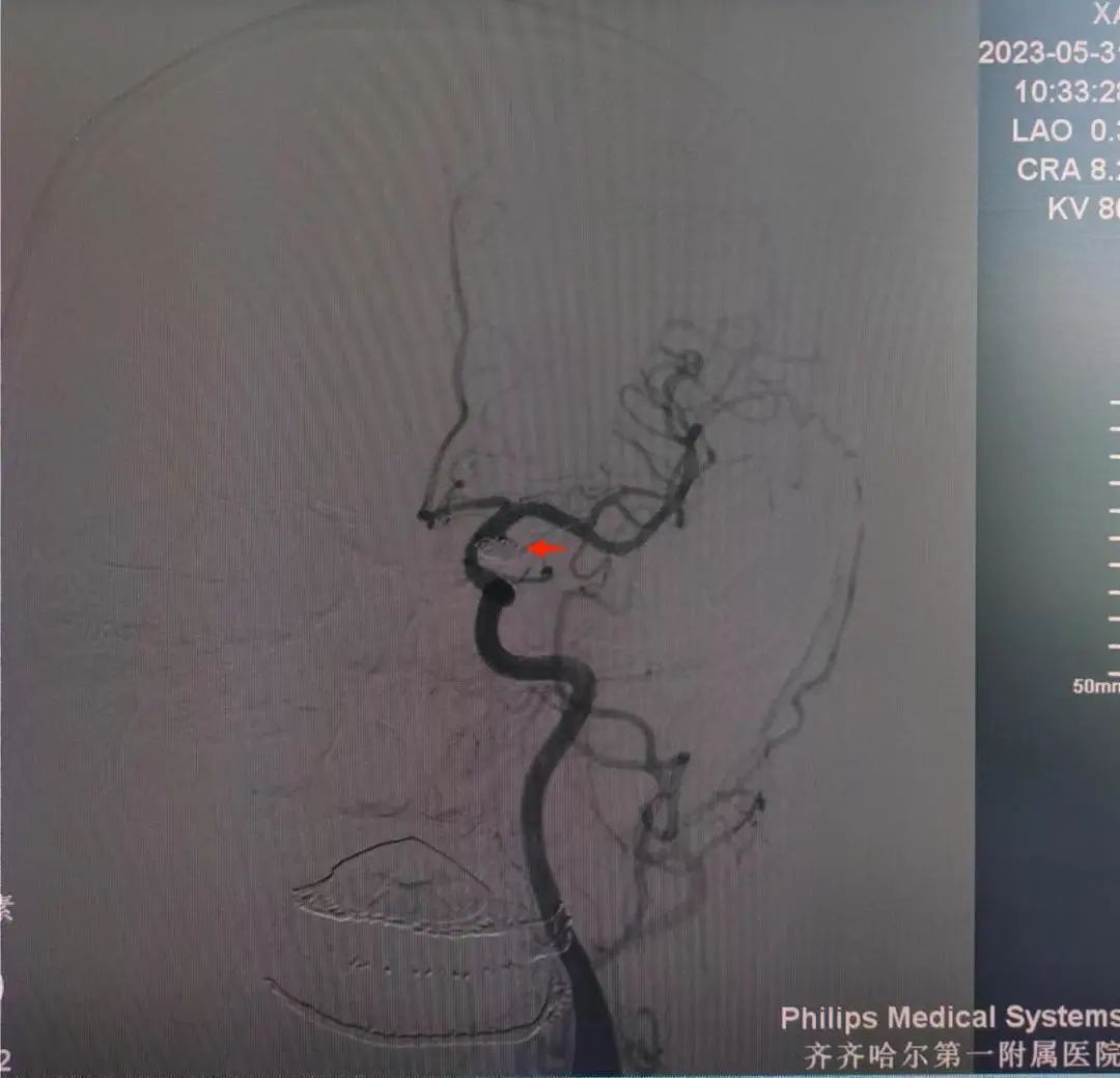 抢救生命,争分夺秒。3个月前,王先生突发颅内动脉瘤破裂危及生命,第一时间来到齐齐哈尔医学院附属第一医院。入院时的头颅CT显示广泛蛛网膜下腔出血,头部CTA检查提示后交通动脉瘤破裂导致蛛网膜下腔出血。我院神经内科二组即刻行动,紧急将患者送入介入室。