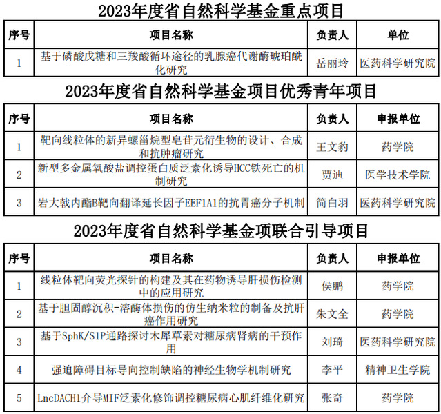 在学院领导的大力支持、二级单位的高度重视和精心培育下,项目申报者结合扎实的前期基础,认真严谨撰写标书,取得了此次省自然科学基金项目的可喜成绩。今后,学院将进一步增强推进科技创新的责任感和使命感,以高质量的科学研究工作为动力,为学院实现医科大学建设目标做出积极贡献。
