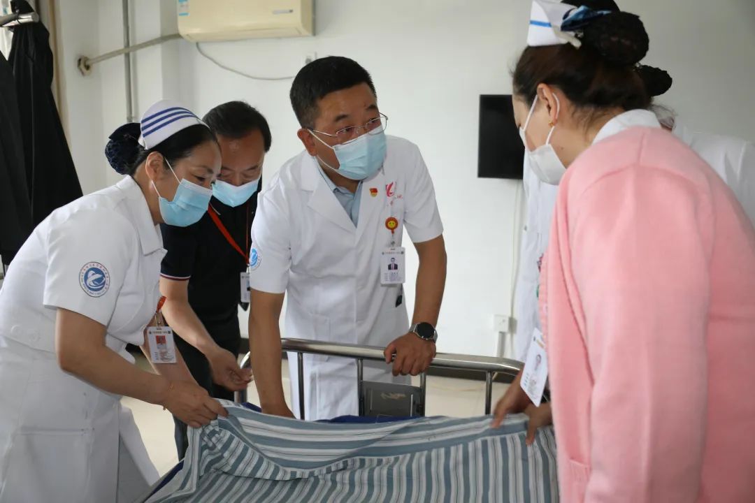 院长、党委副书记李忠原还详细询问医务人员的工作近况、难点以及是否有医院需要解决的问题。大家纷纷表示要尽职尽责做好本职工作,为患者服好务。每走进一个病区,李院长都走进病房,检查床被、沙发、桌椅,和患者唠家常,询问患者的就诊体验和满意度,将意见整理记录。